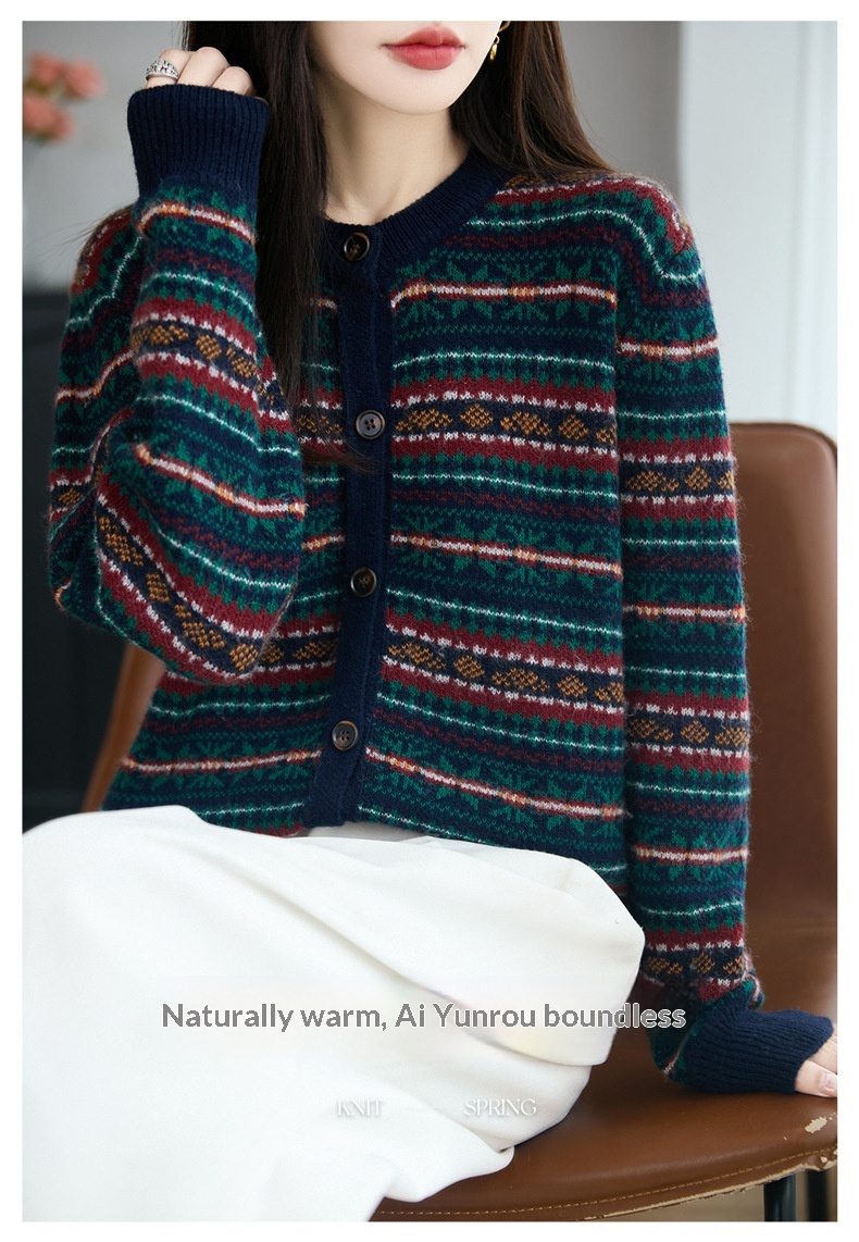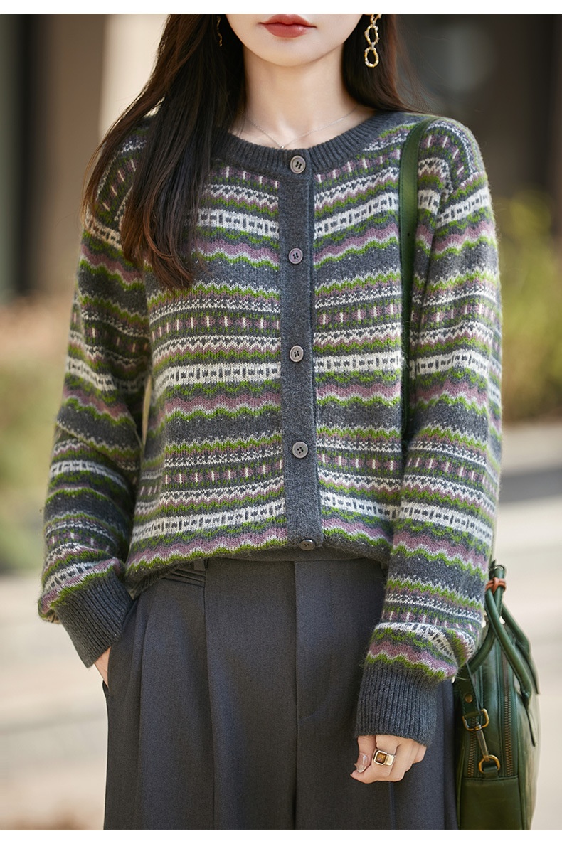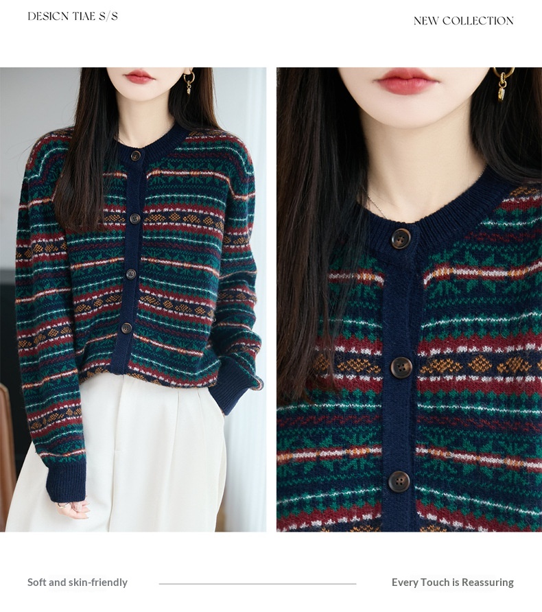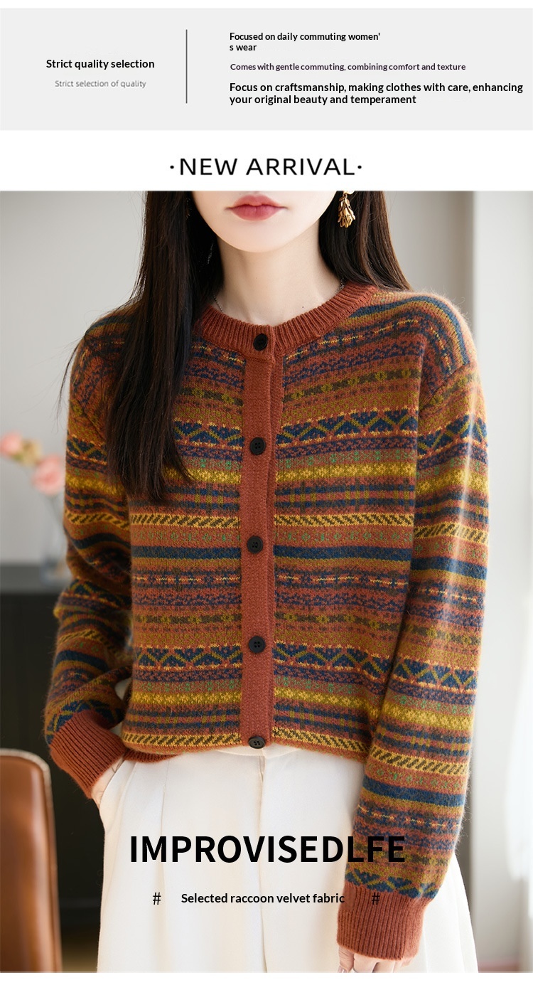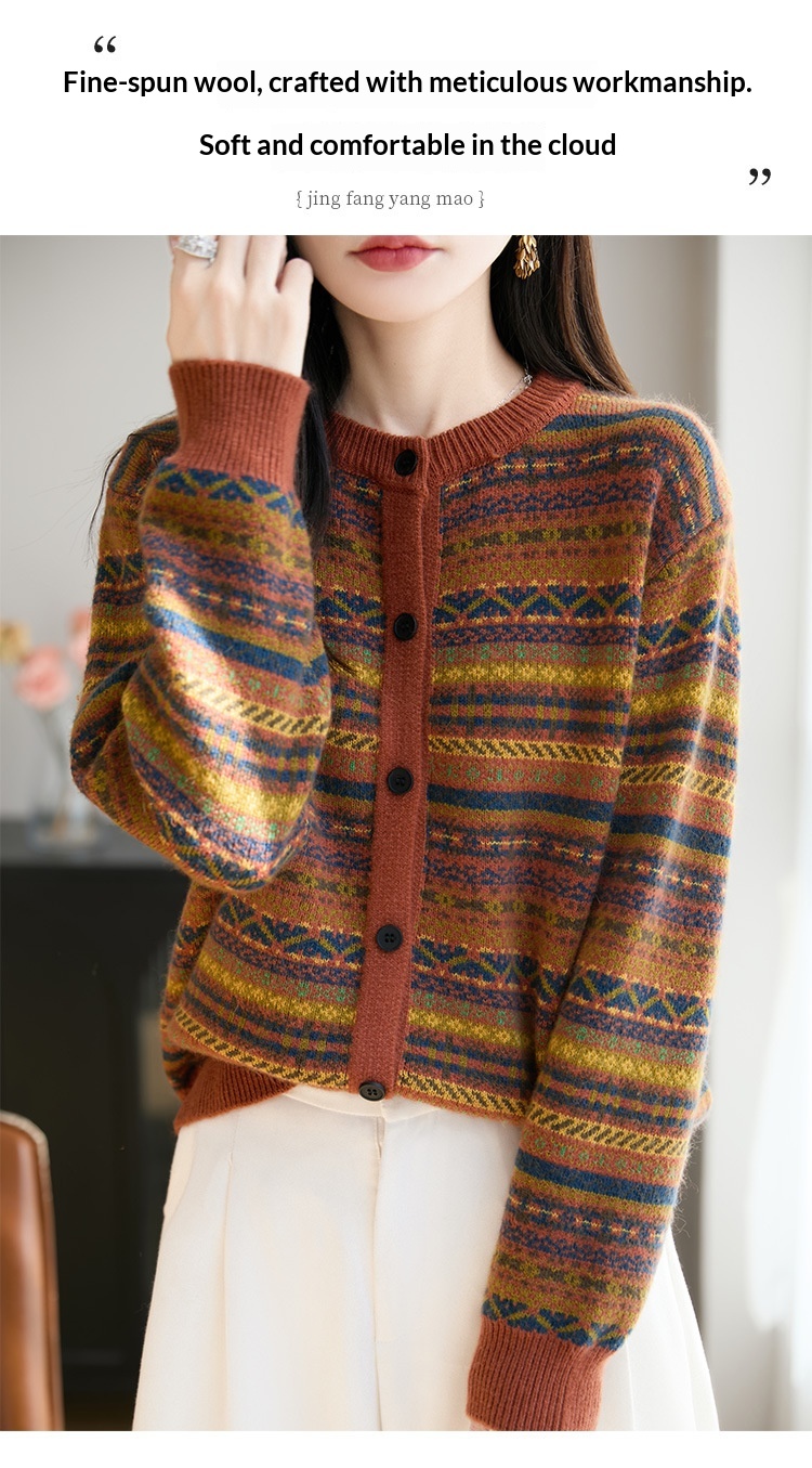 0 Review for Womens Retro Jacquard Crew-Neck Long-Sleeve Sweater