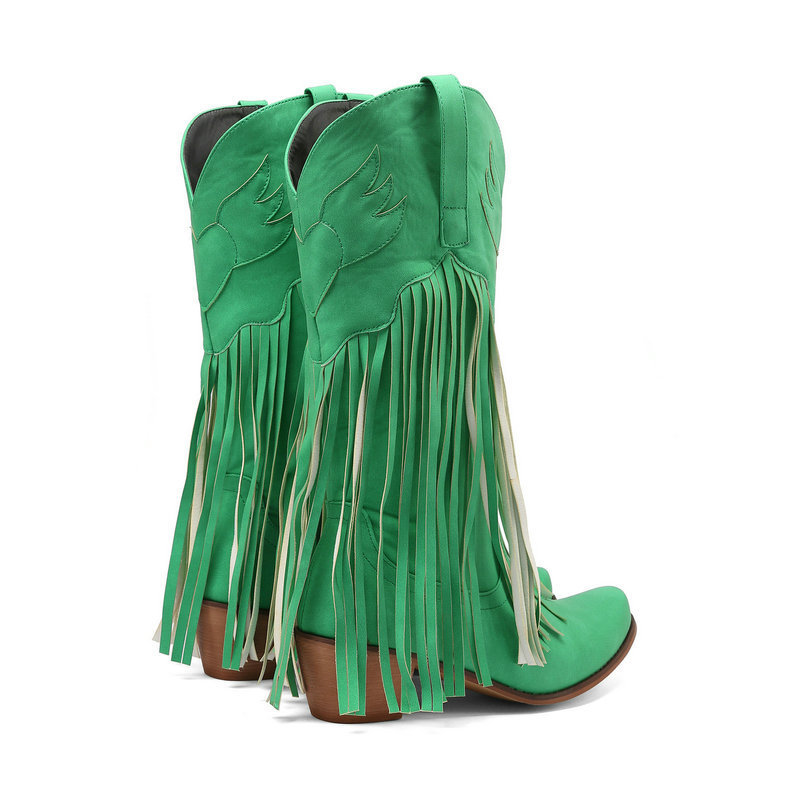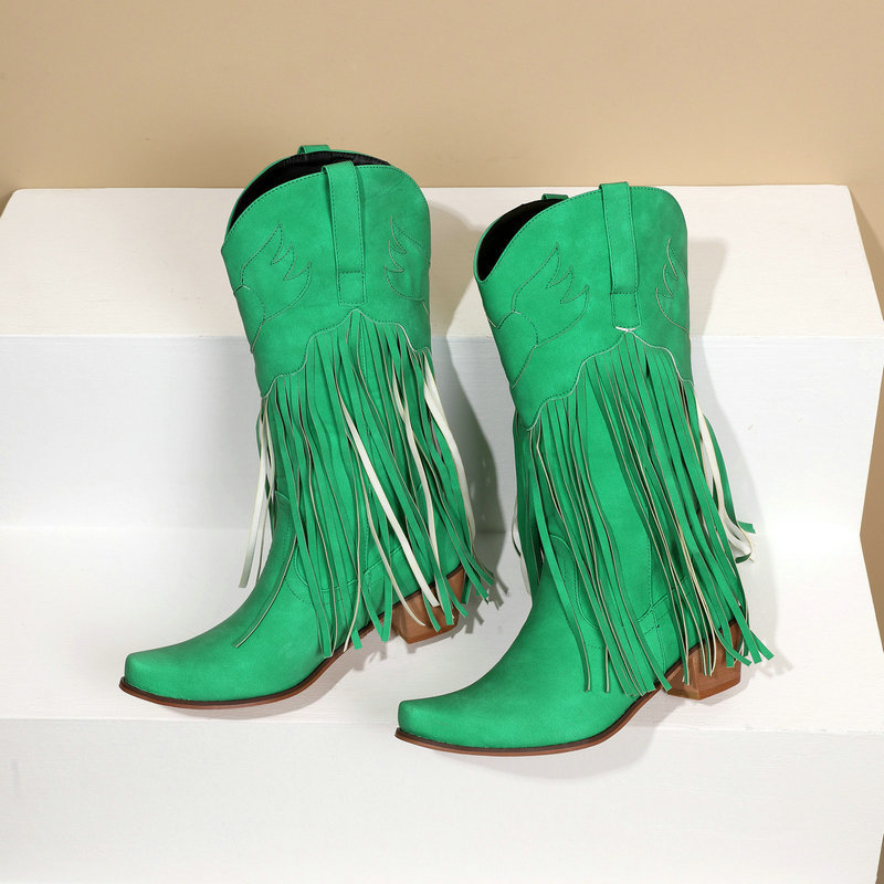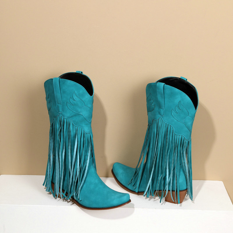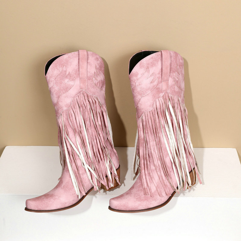 0 Review for Womens Retro Mid-Calf Chunky Heel Round-Toe Boots
