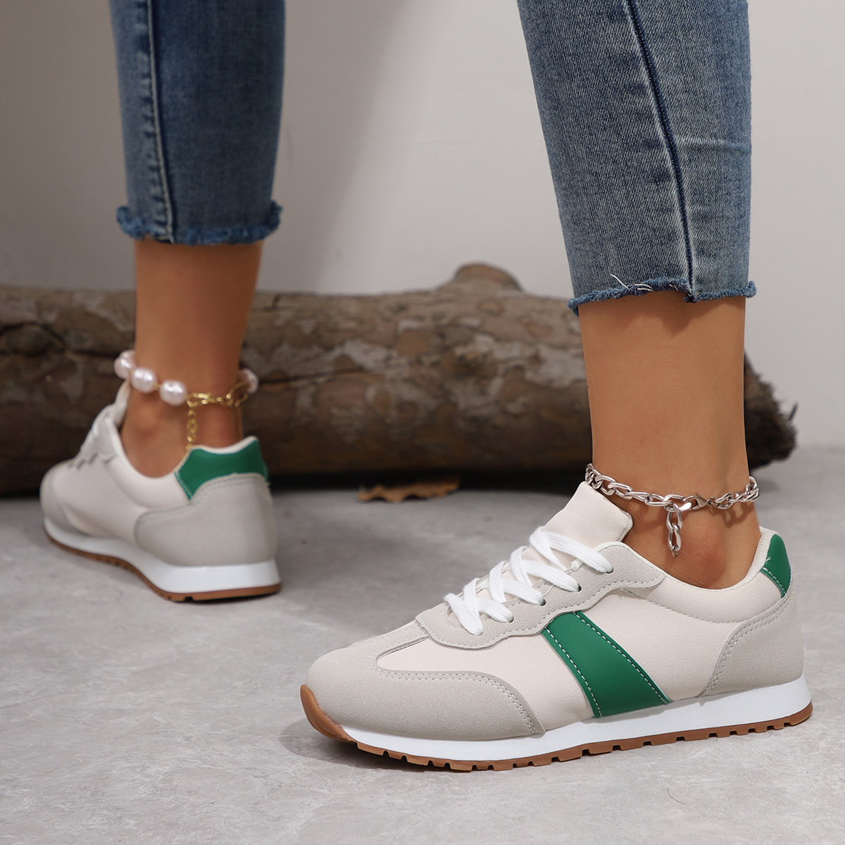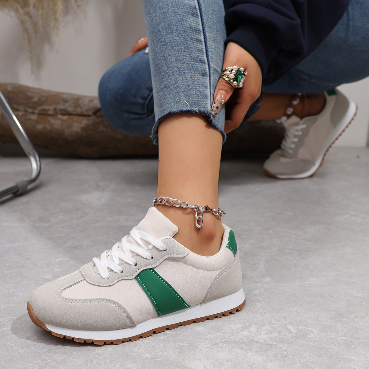 0 Review for Womens Round-toe Lace-up Casual Thick-soled Elevating Sneakers