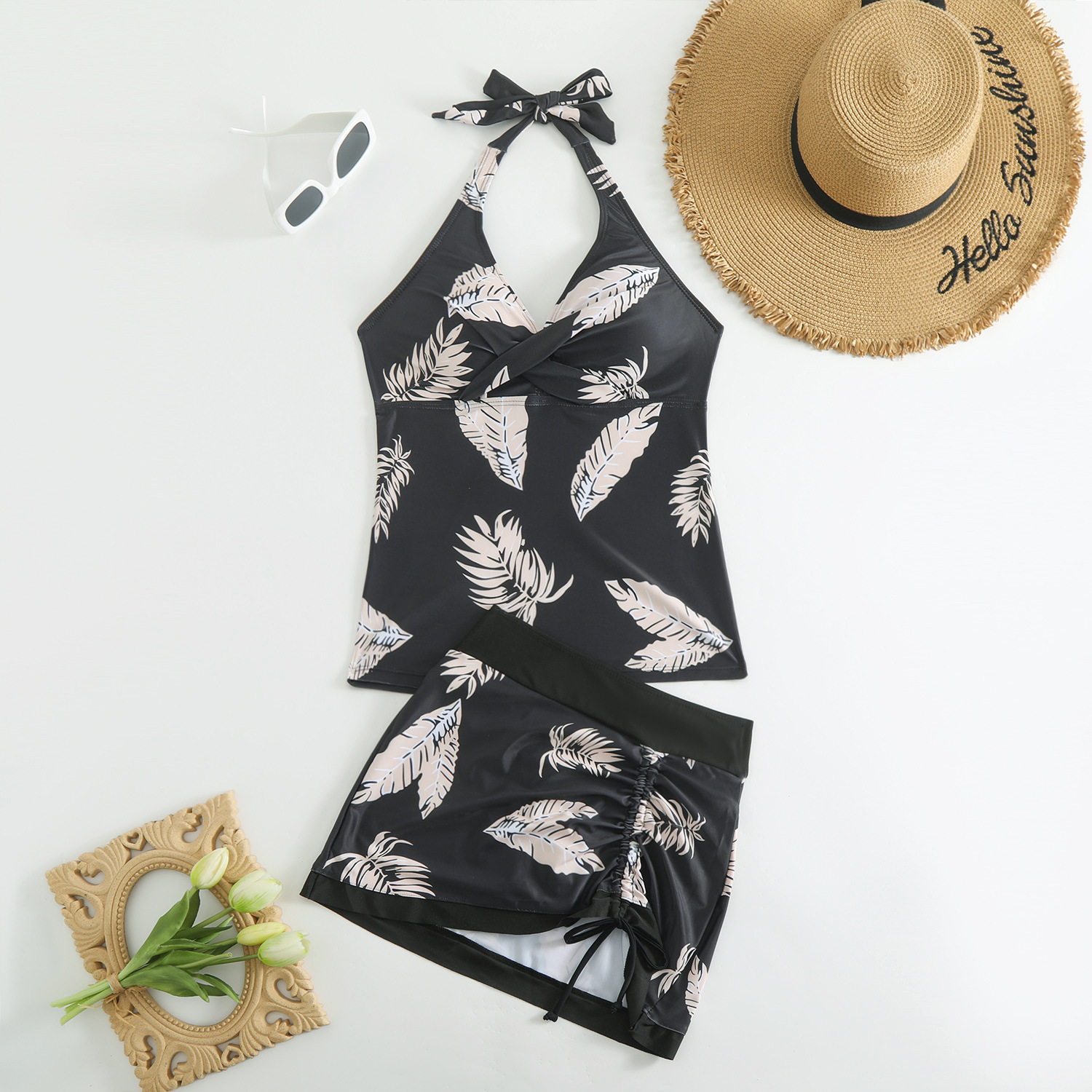0 Review for Womens Sexy Halter-style Two-piece Top And Skirt Bikini Set