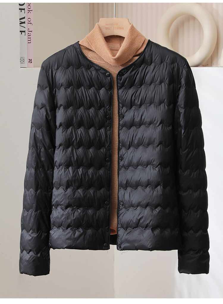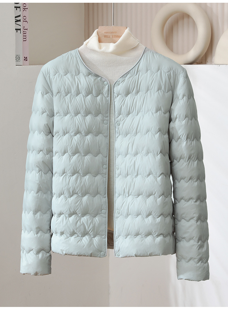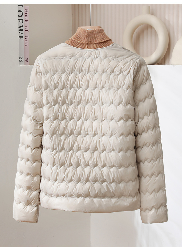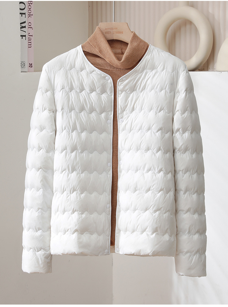 0 Review for Womens Short Puff Jacket With A Ruffled Crew Neck