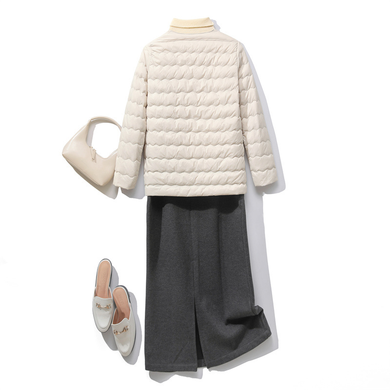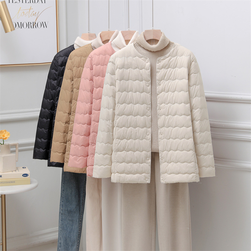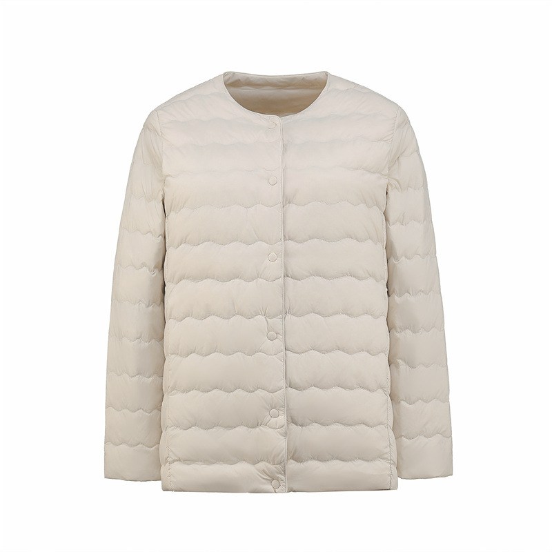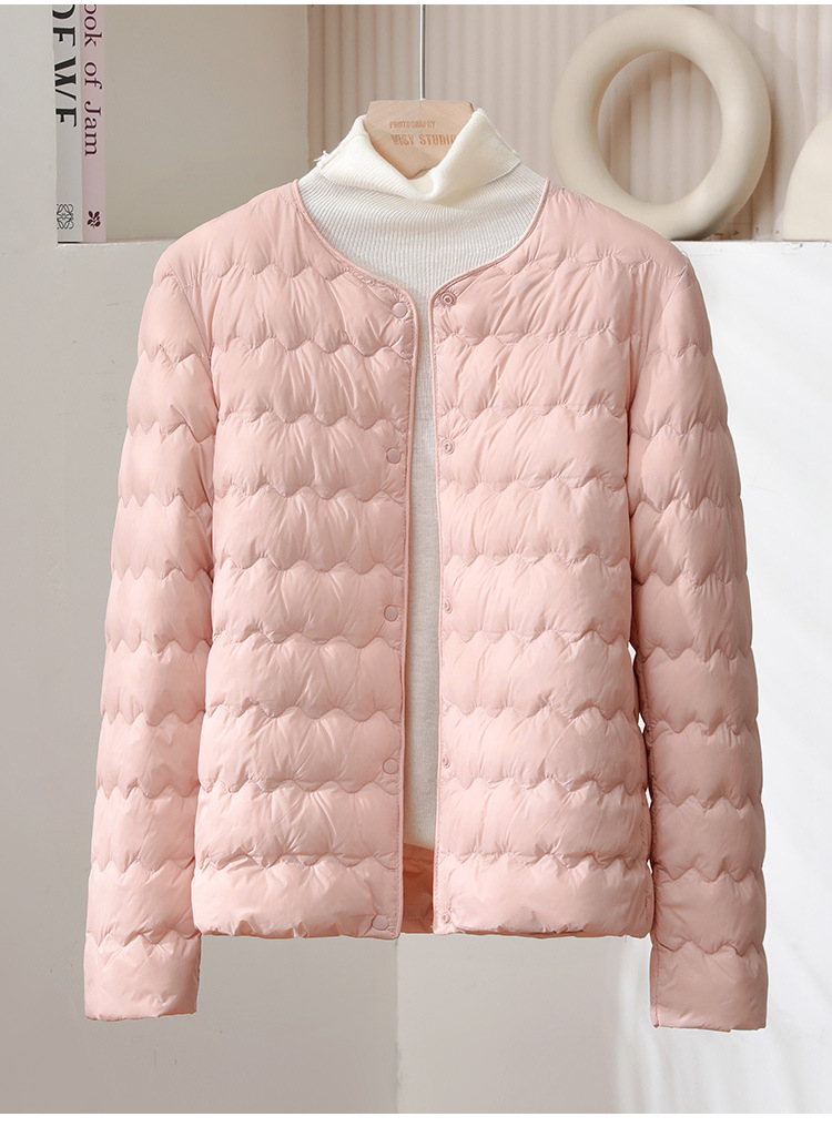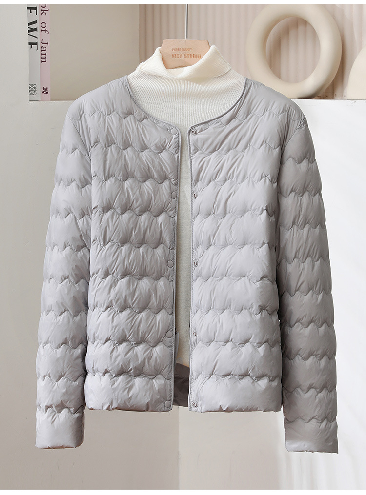 0 Review for Womens Short Puff Jacket With A Ruffled Crew Neck