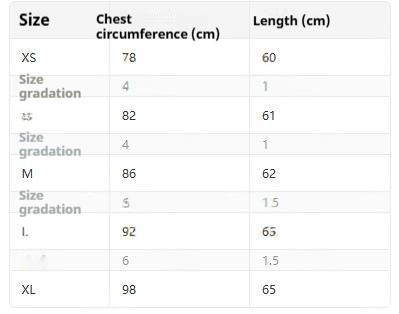 Sizes: XS, S, M, L, XL