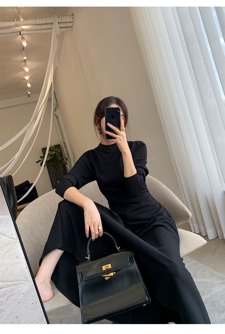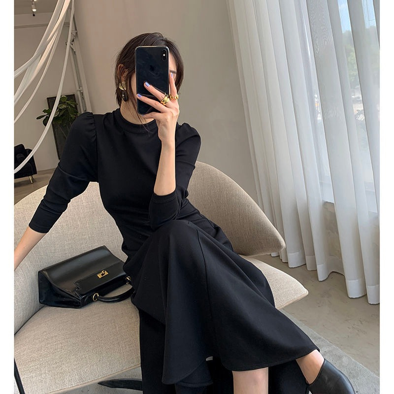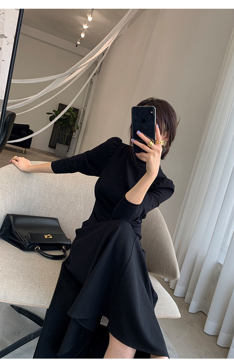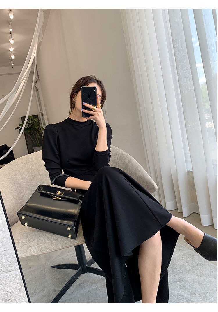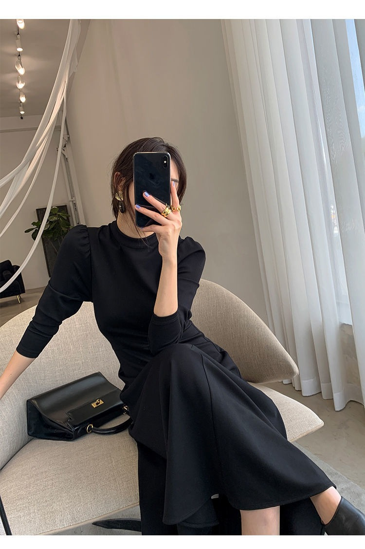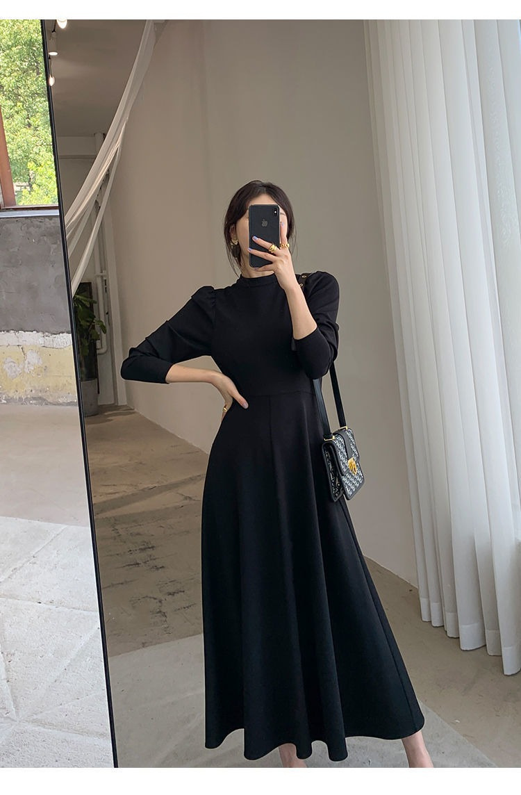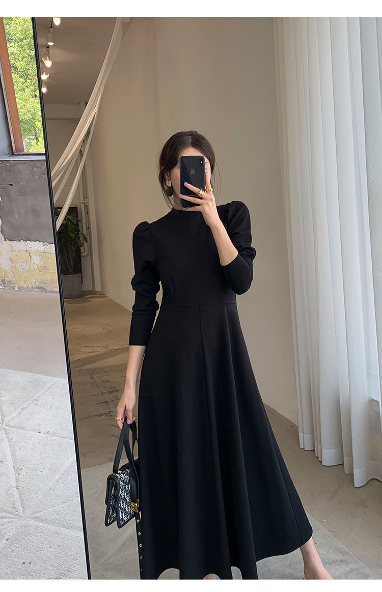 0 Review for Womens Solid-Color Casual Long-Sleeve Swing Dress