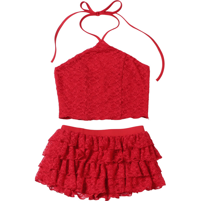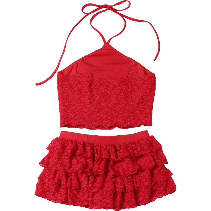 0 Review for Womens Solid-Color Halterneck Backless Tank Top And Skirt Set