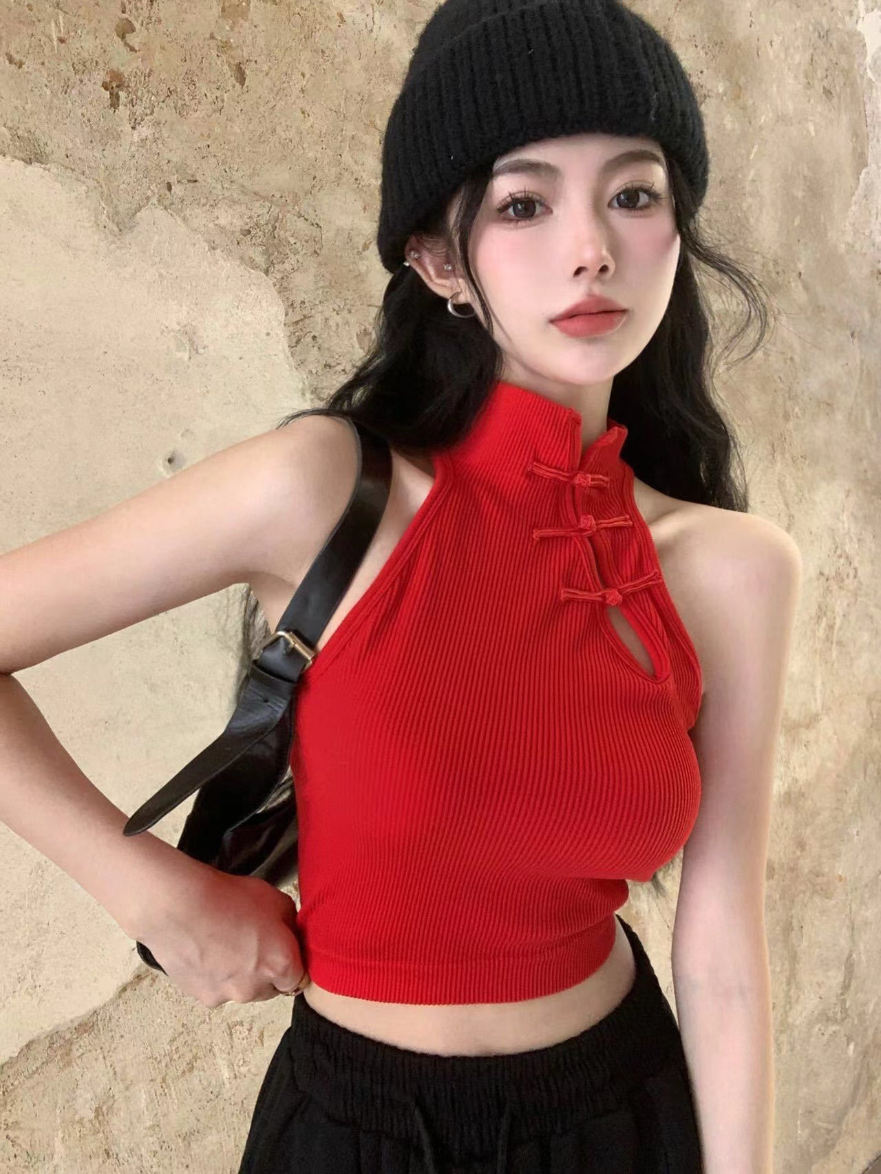 0 Review for Womens Solid-Color Retro Chinese-Style Camisole