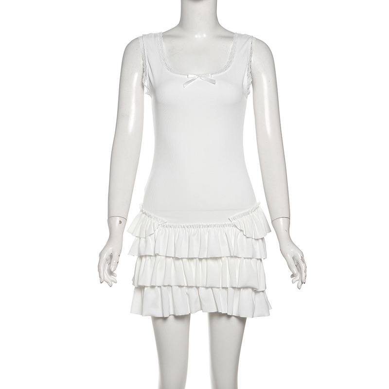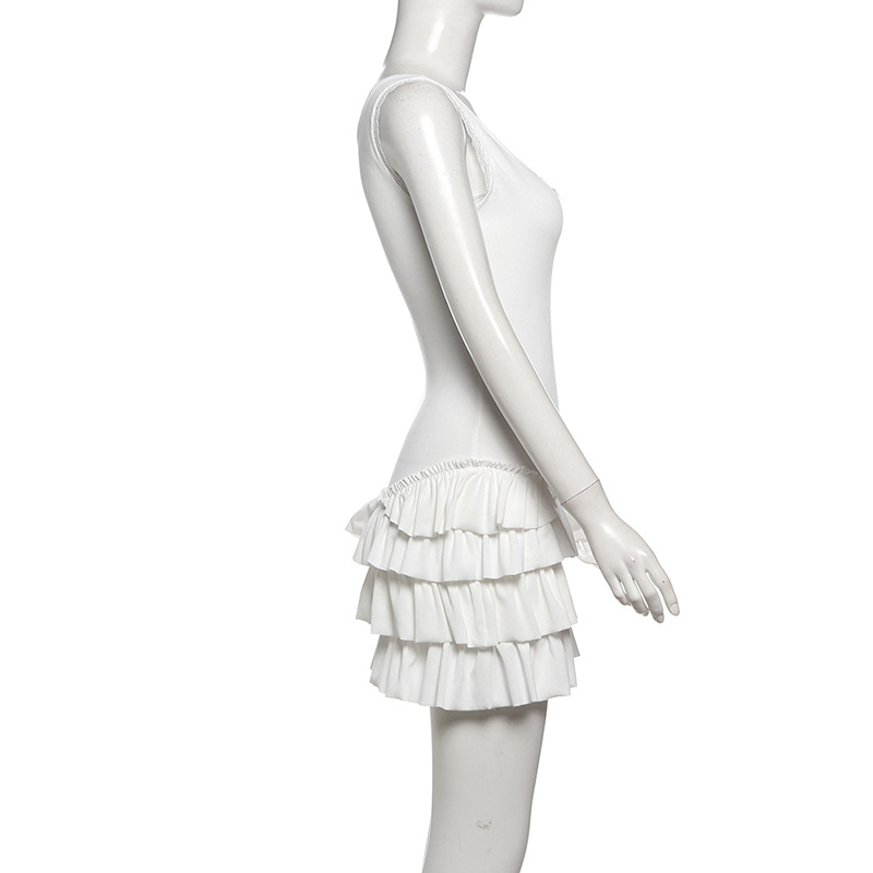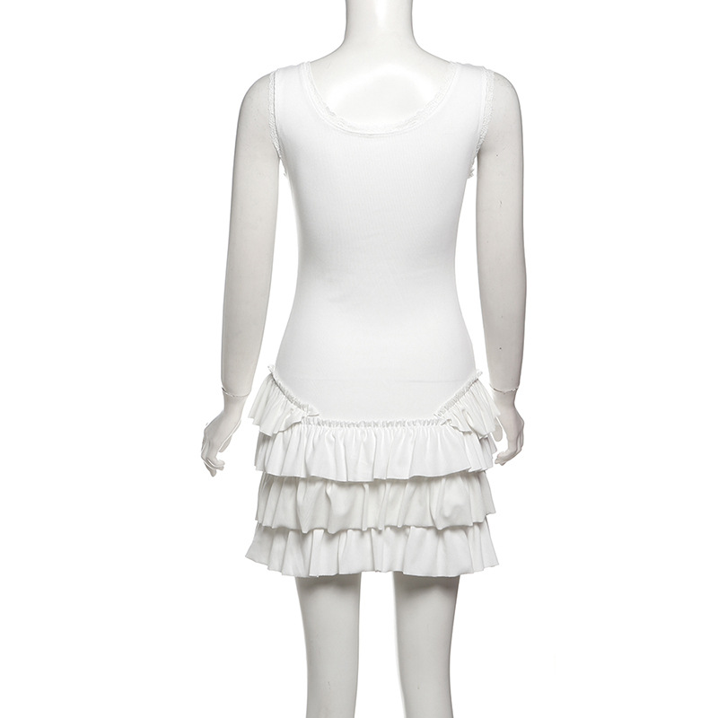 0 Review for Womens Solid-Color Slim-Fit Street-Style U-Neck Sleeveless Dress