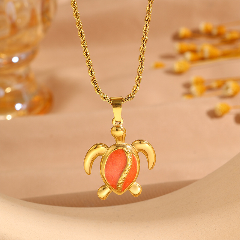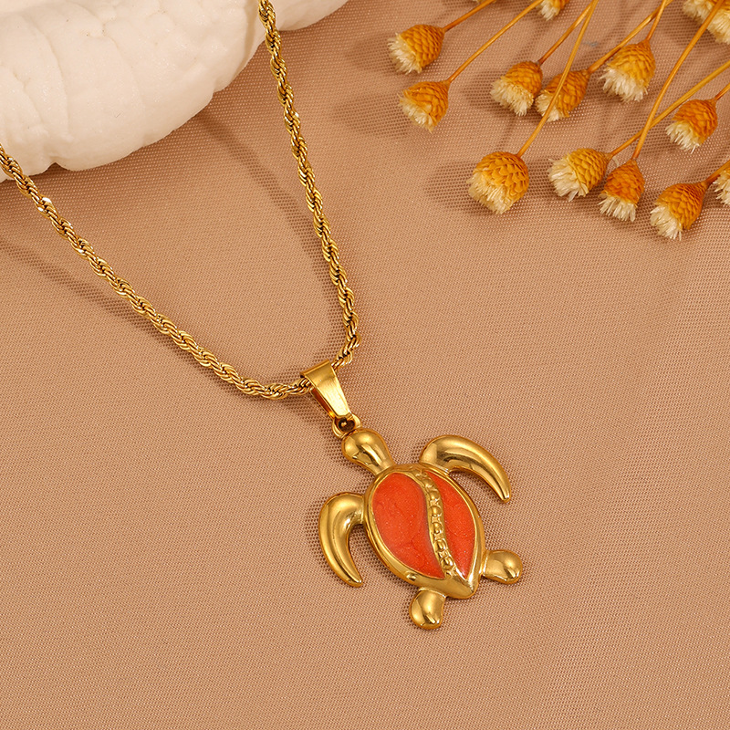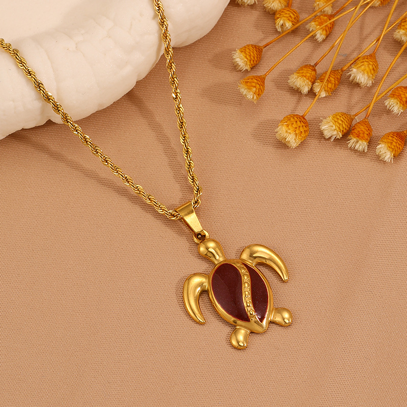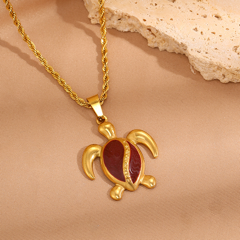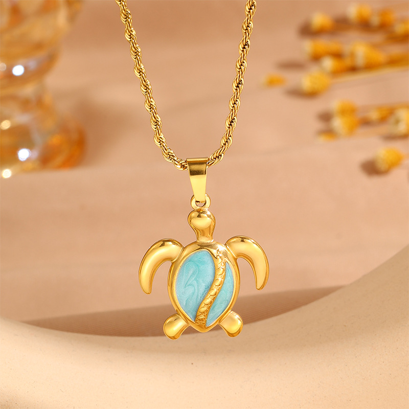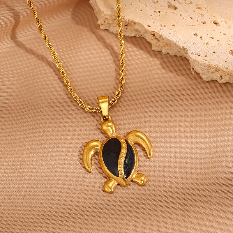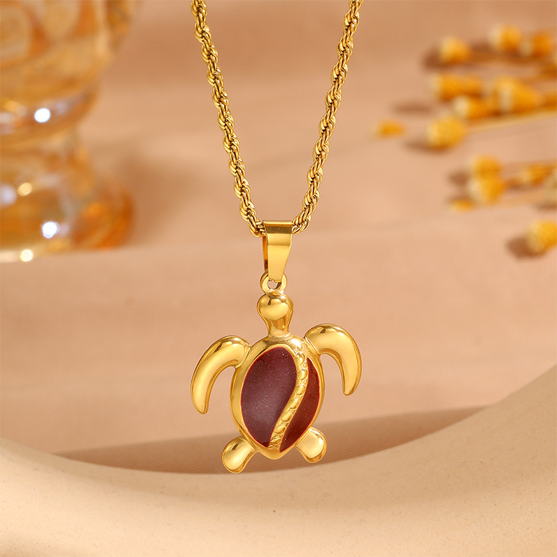 Womens Stainless Steel Turtle Pendant Necklace