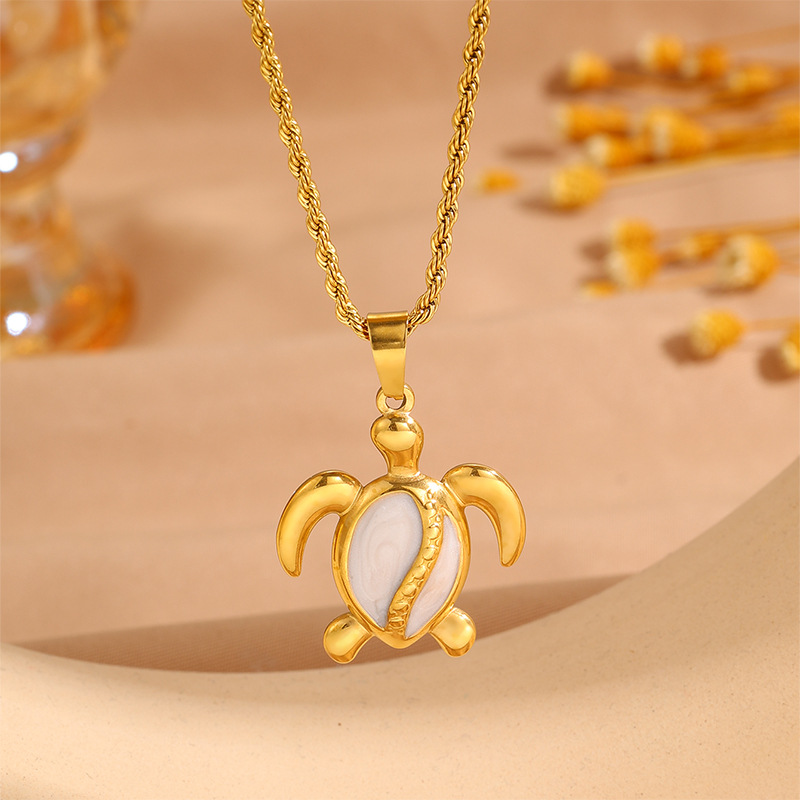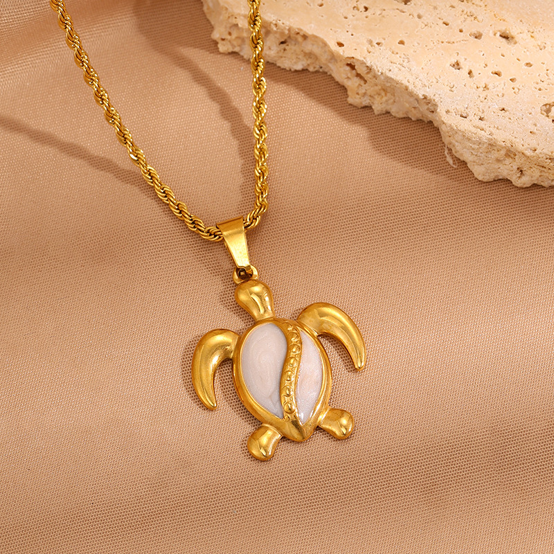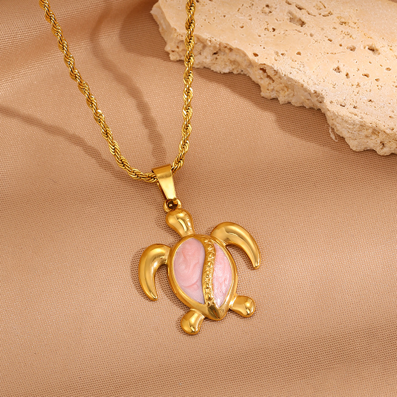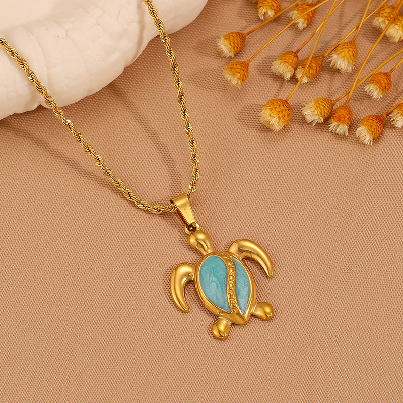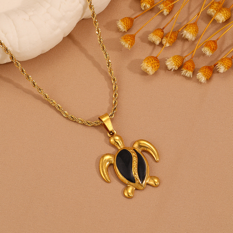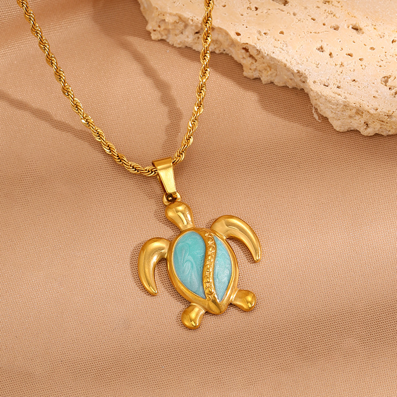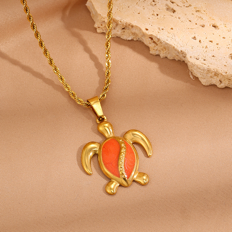 Womens Stainless Steel Turtle Pendant Necklace
