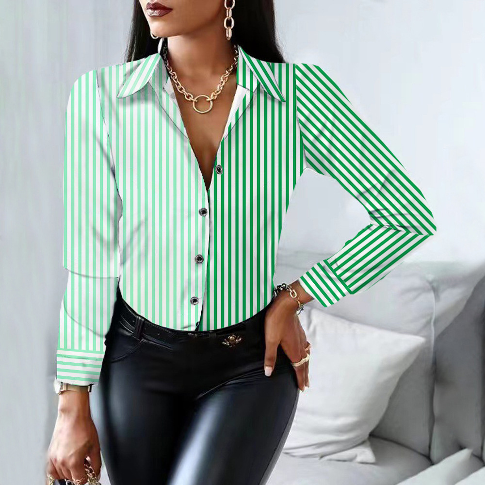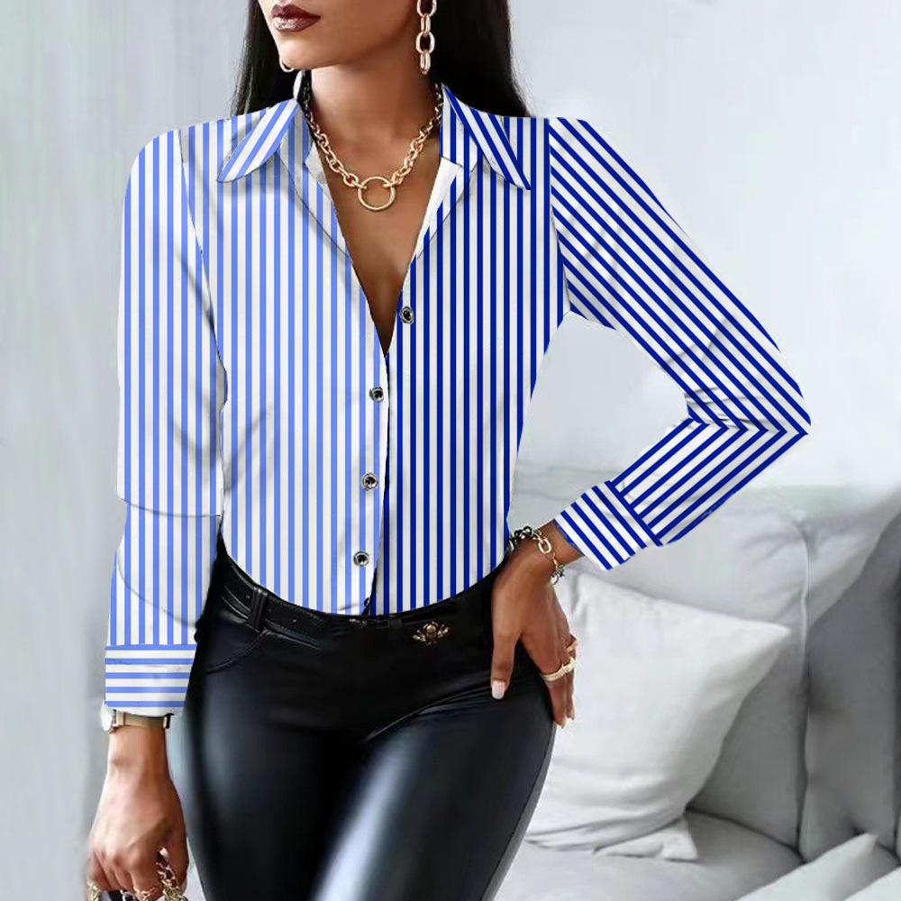 0 Review for Womens Striped Printed Single-Breasted Long-Sleeve Shirt