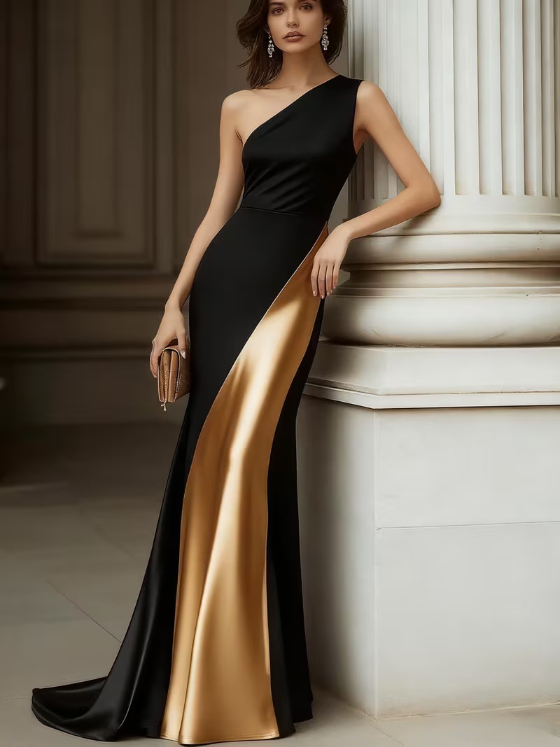 Trendy Elements: Color Block, Defined Waist, Off-the-Shoulder