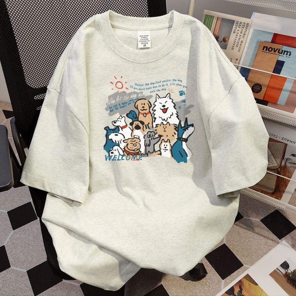 0 Review for Womens Summer Short-Sleeve Cotton T-Shirt With Puppy Print