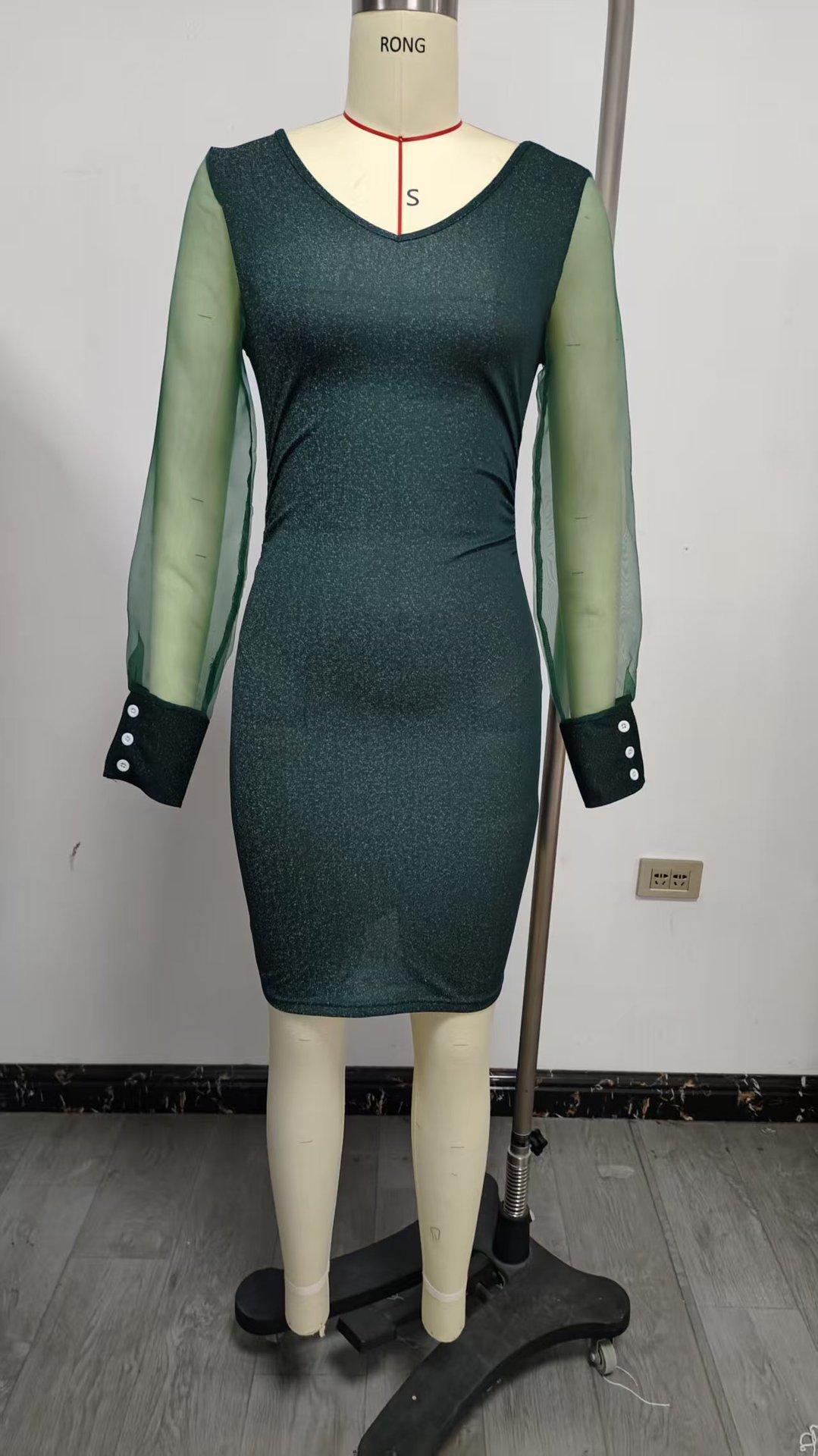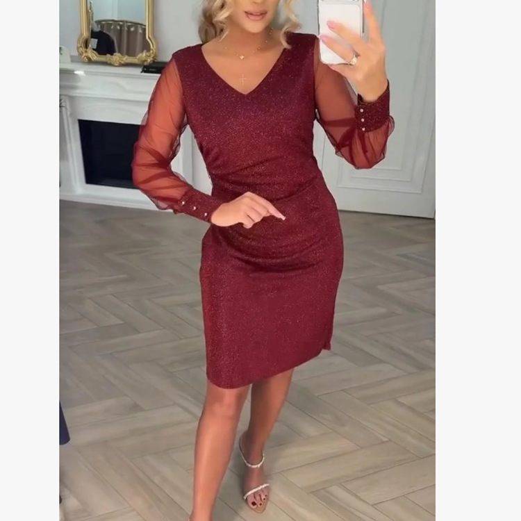 0 Review for Womens V-neck Bodycon Sexy Mesh Dress