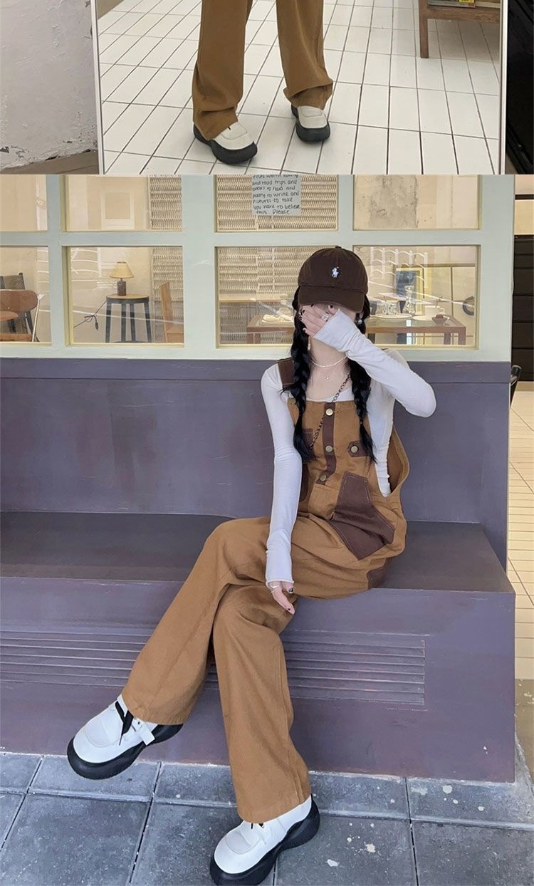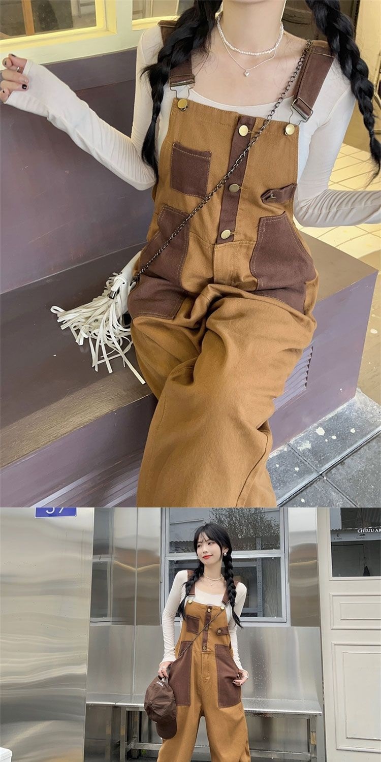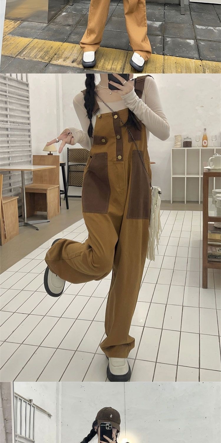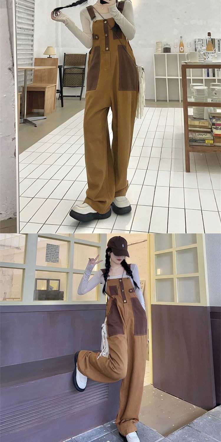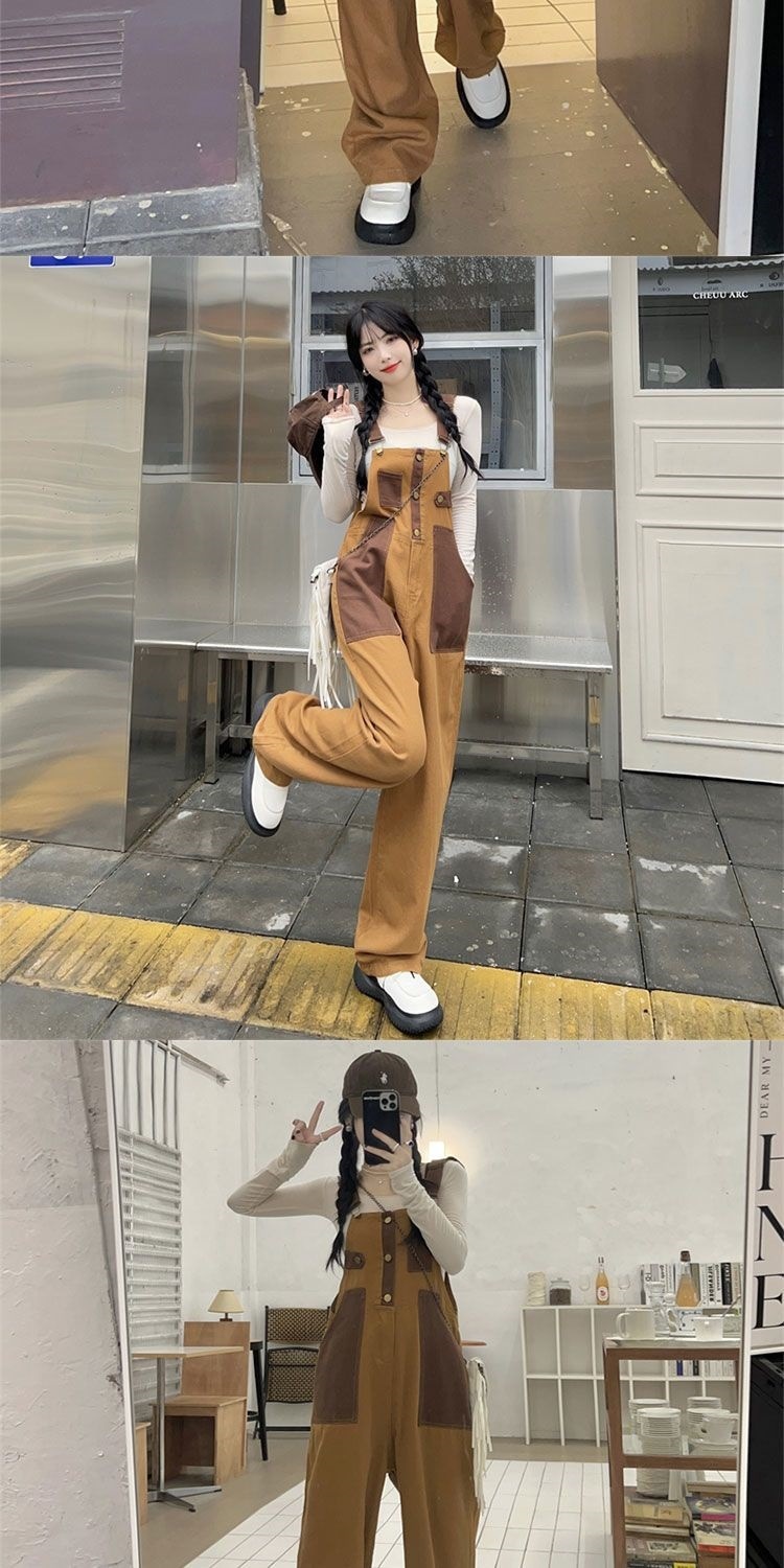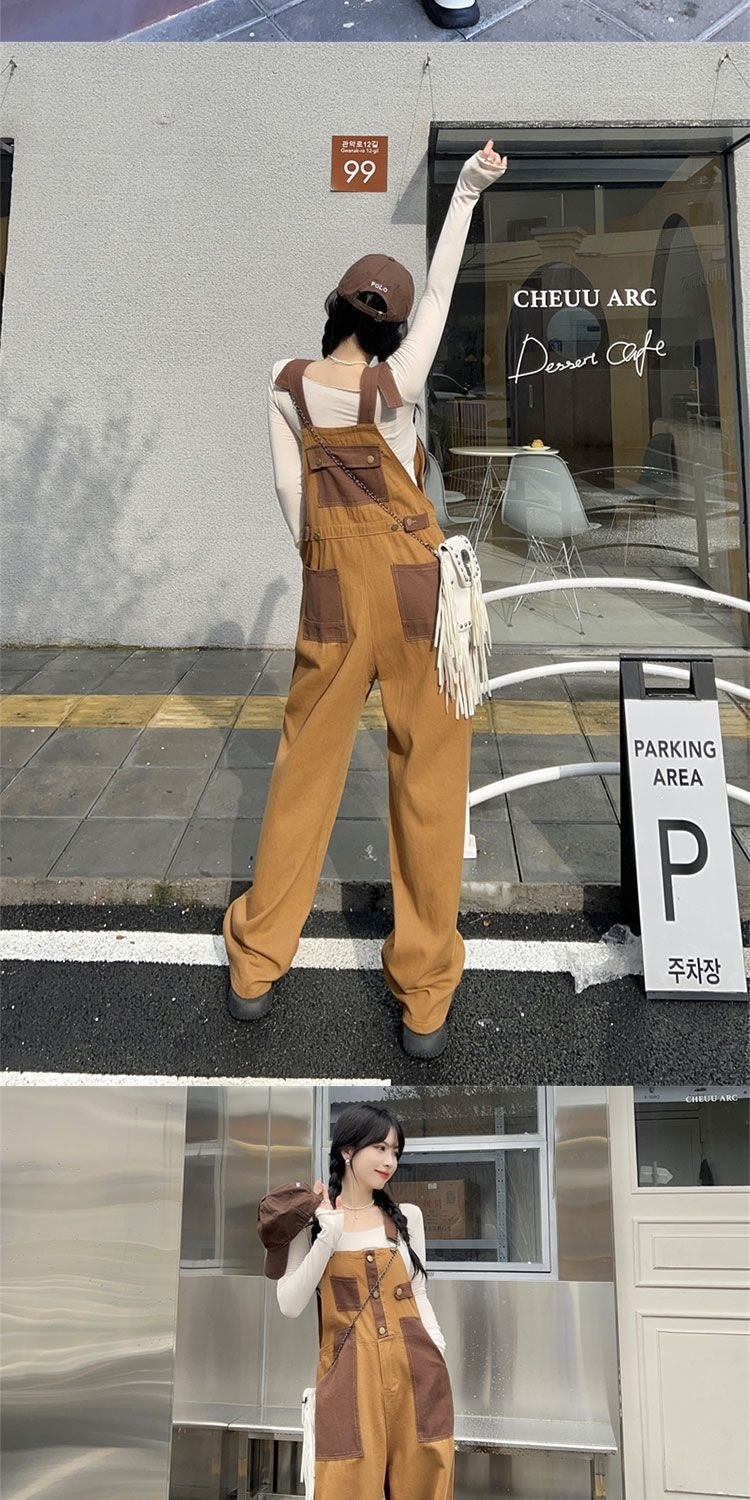 Youthful And Chic American-Style Burger Embroidery Denim Suspender Pants