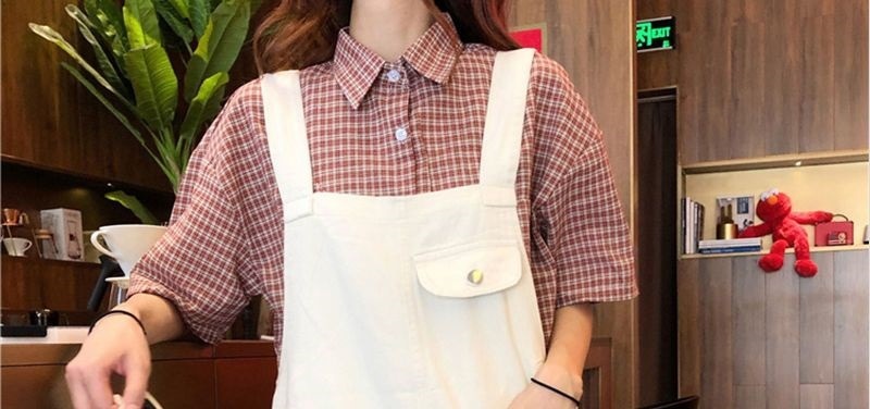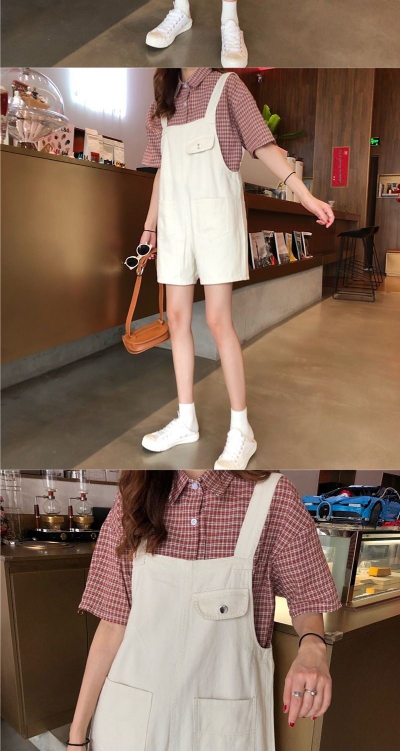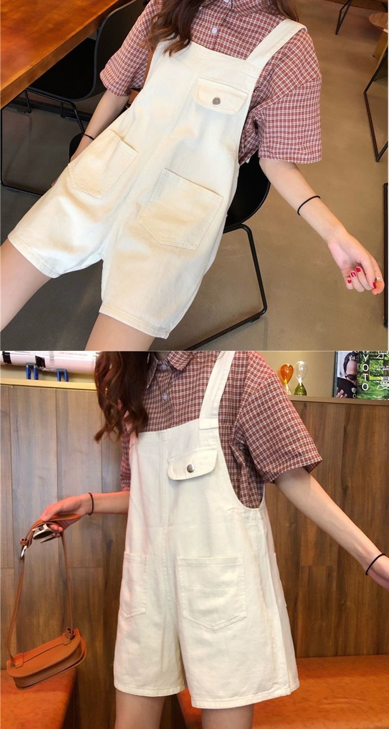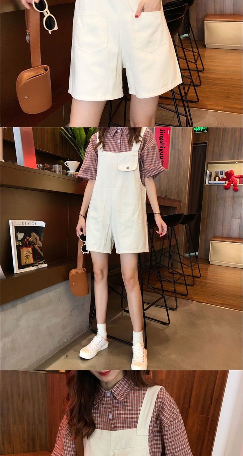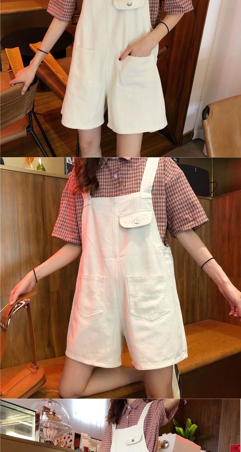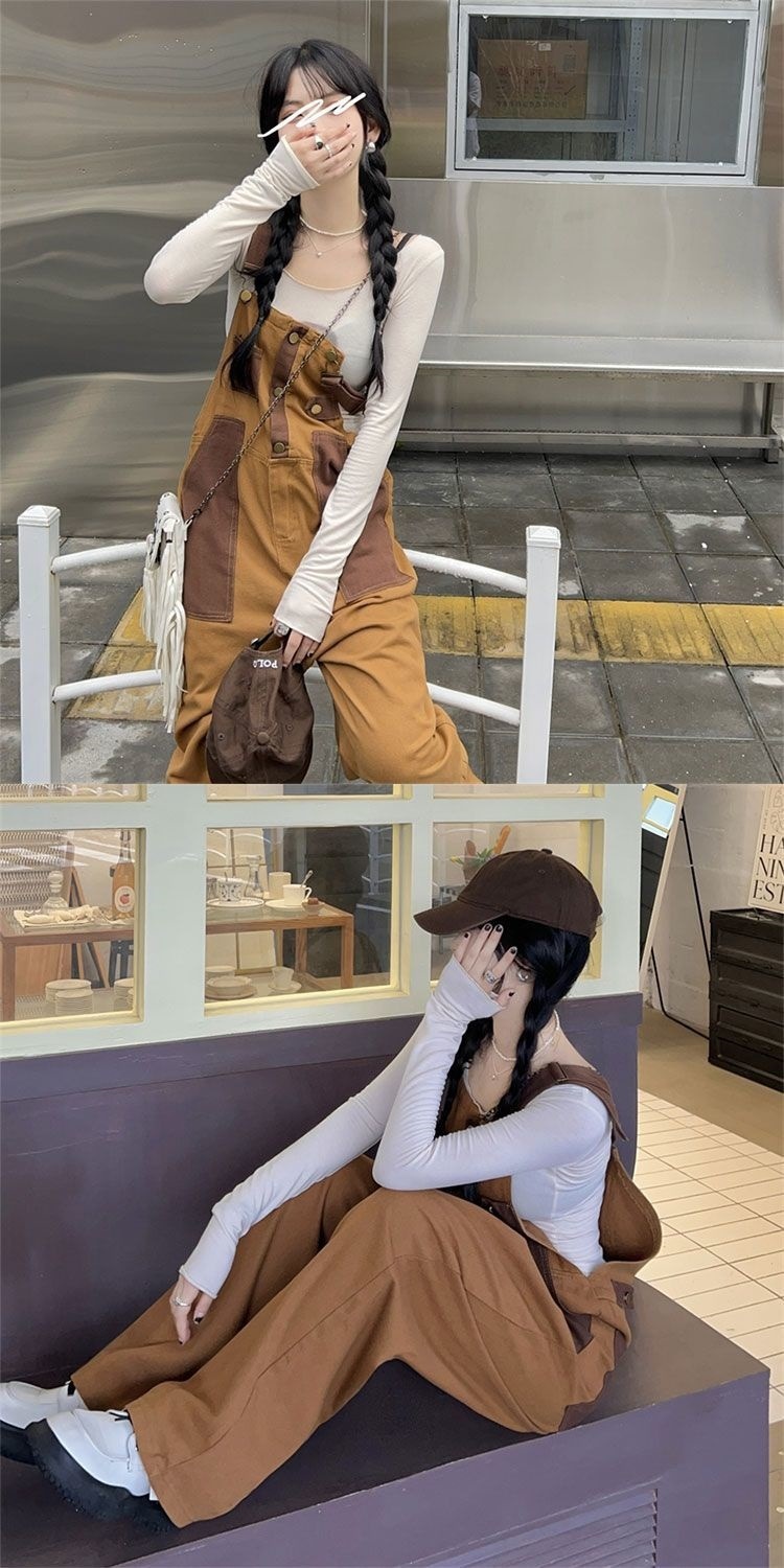 Youthful And Chic American-Style Burger Embroidery Denim Suspender Pants