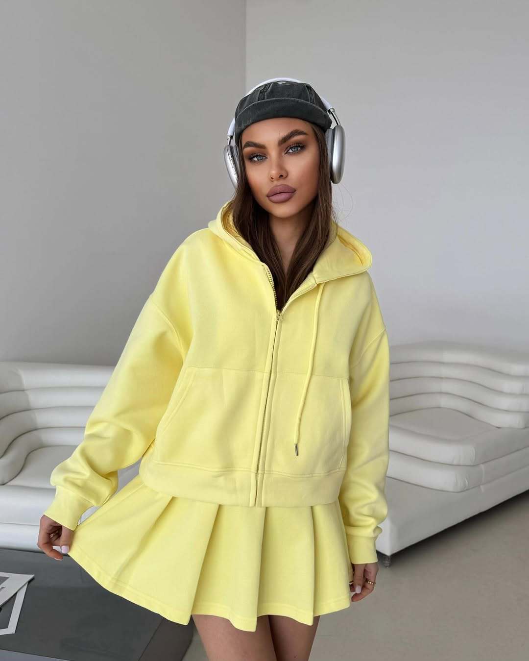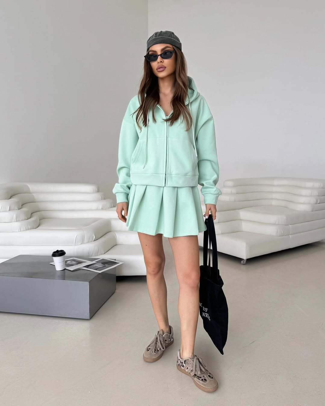 0 Review for Zip-up Cardigan And Sports Skirt Set